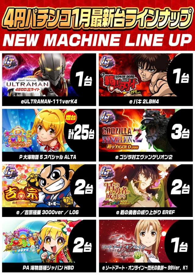 1月5日【月】新台入替!13時開店予定!!