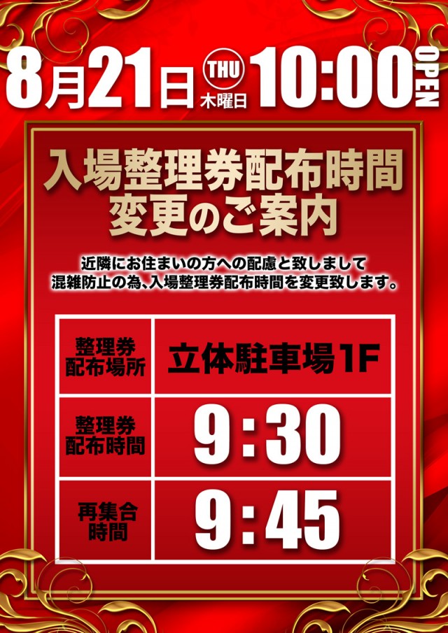 8/21【木】NO.1エンターテイメント!10時開幕!!