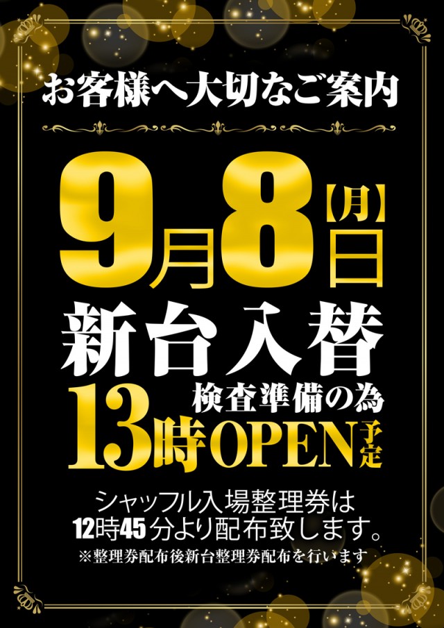 =新台入替=9月8日(月)全館13時オープン予定!!
