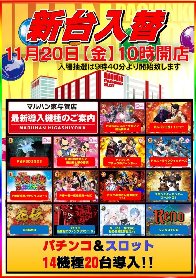 「マルハン東与賀店」本日10時開店!!9時40分抽選開始!!