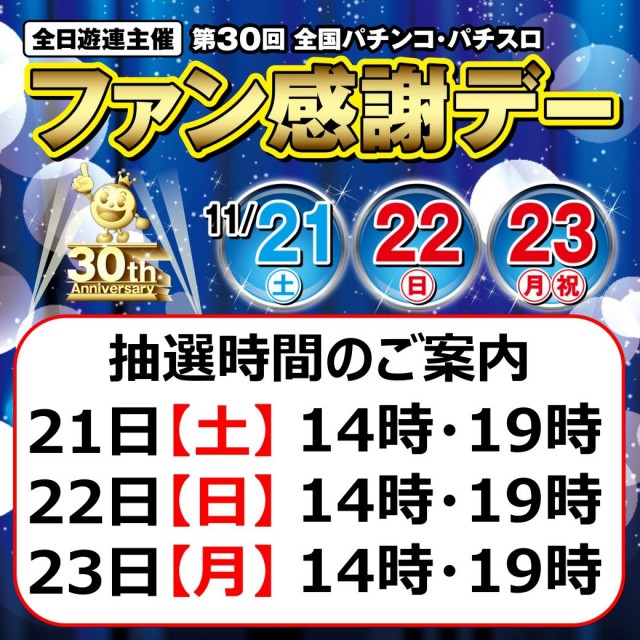 第30回全国パチンコ・パチスロファン感謝デー開催!