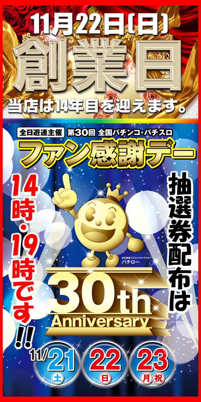 創業日&第30回全国パチンコ・パチスロファン感謝デー!
