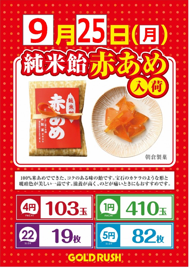 本日9月30日【土曜日】朝10時開店!お取り寄せ賞品入荷!