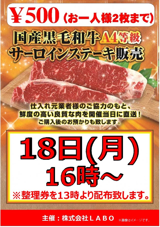 本日9月18日(月)朝10時開店!ステーキ販売業者来店!!
