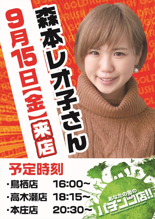 本日15日(金)朝10時開店森本レオ子さん来店!!