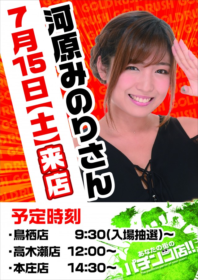 本日7月15日【土曜日】朝10時開店!!河原みのりさん来店