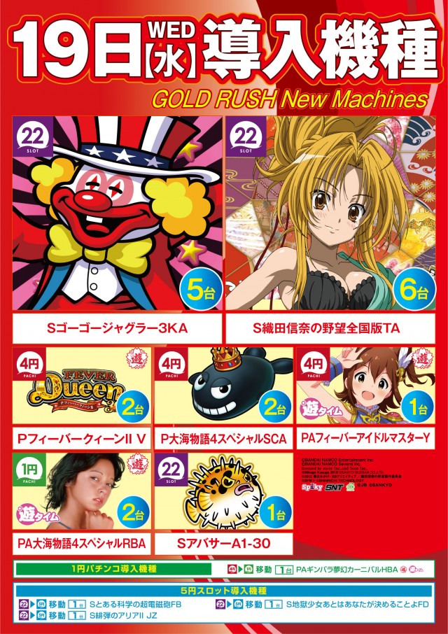 本日7月19日(水)【 新台入替 】朝10時開店!!