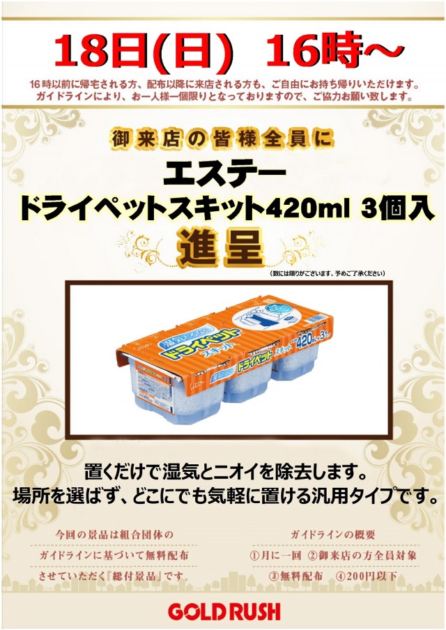 本日6月18日【日曜日】朝10時開店!!総付景品配布