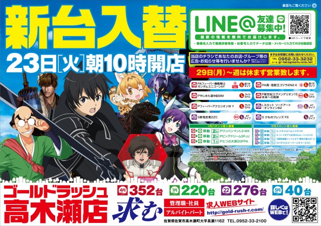 本日5月23日(火)【 新台入替 】朝10時開店!!