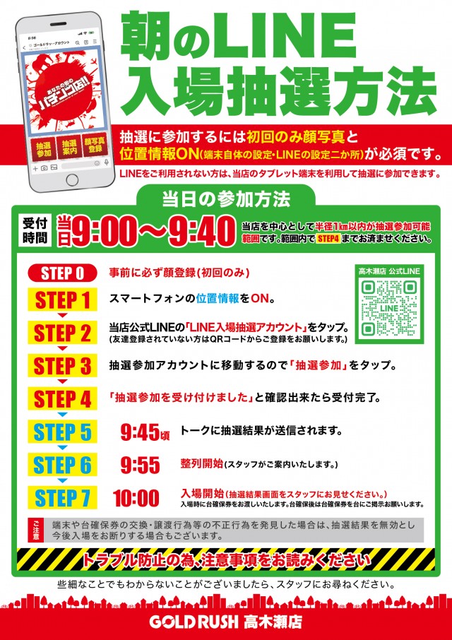 番号発行前には優先入場口周辺に集合していただくようお願いいたしますいつもご愛顧頂いております方はもちろん、