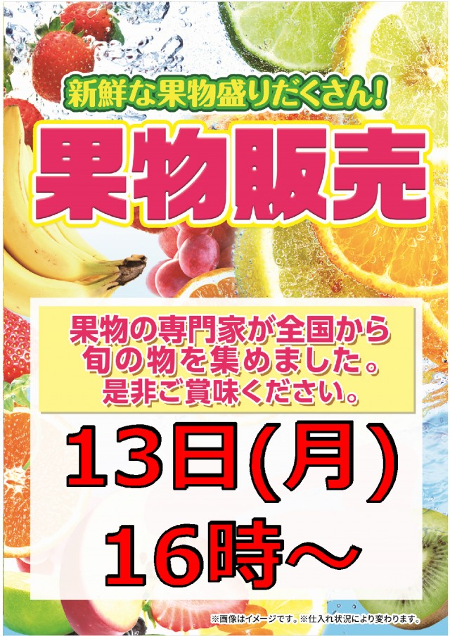 本日13日(月)朝10時開店!16時から果物販売業者来店!