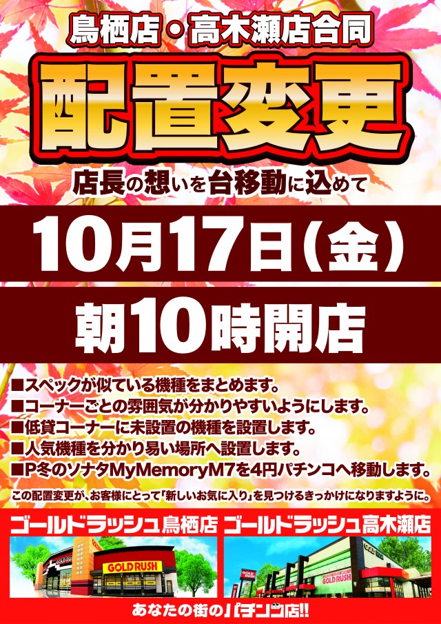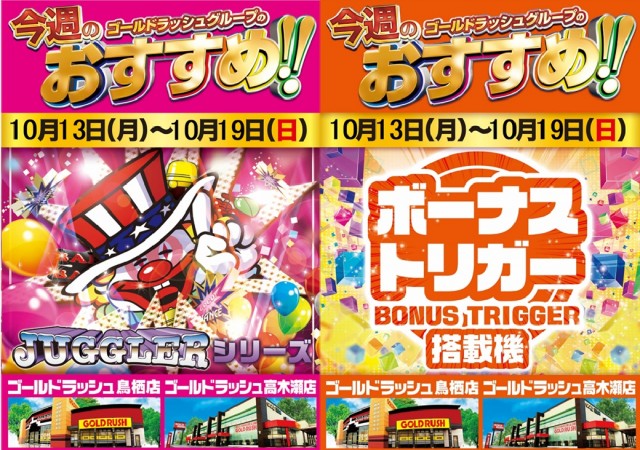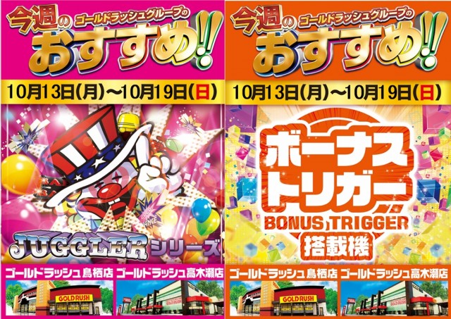 17日(金)鳥栖店合同配置変更今週のおすすめジャグラーBT機