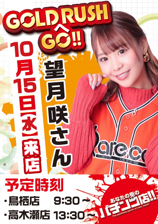 明日15日(水)朝10時開店!望月咲さん13時30分~来店!
