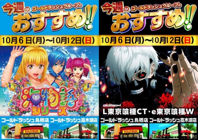 本日12日(日)朝10時開店!今週のおすすめ海物語・東京喰種