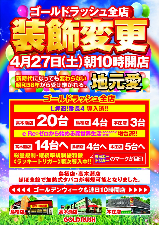 本日27日(土)朝10時開店!!ゴールドラッシュ全店装飾変更