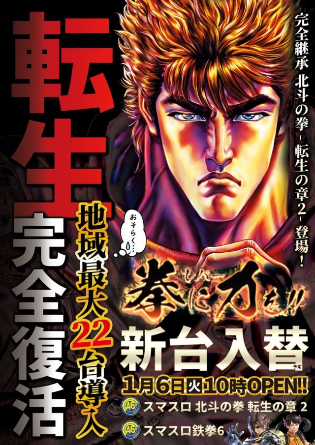明日6日 新台入替⚡北斗転生22台導入!最新台 計36台 ⚡