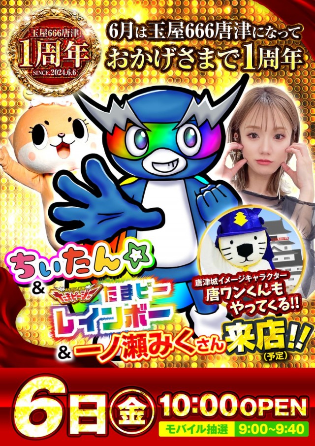 明日6日 玉屋666唐津はおかげさまで1周年🌈10時開店🔥