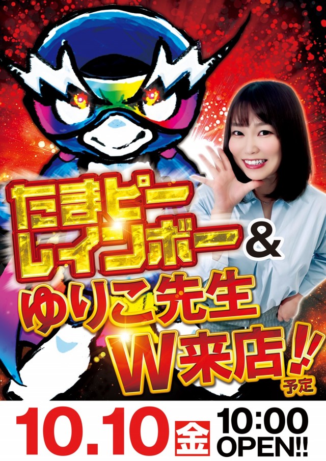10日(金)たまピーレインボー&ゆりこ先生W来店!