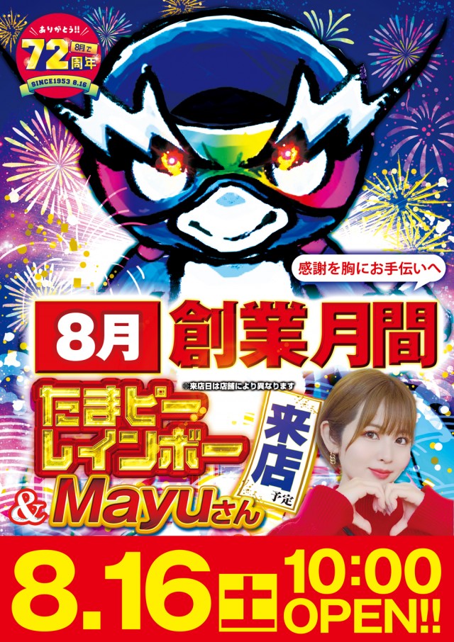明日16日(土)⚡玉屋創業日⚡たまピー✖Mayuさん来店