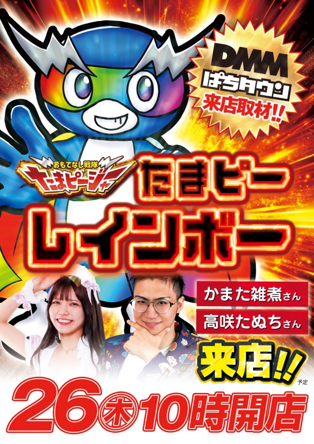 明日26日 たまピーレインボー来店!10時OPEN️🔥