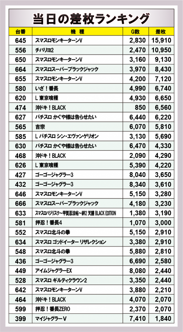 ※差枚数順に掲載しています。