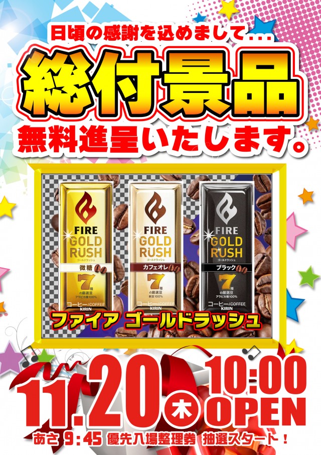 ◆本日❶❶月①①日 10時開店!9:45整理券抽選開始!