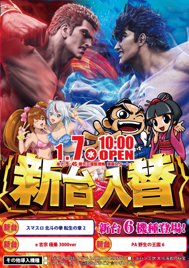 明日7日 新台入替10時開店!9:45整理券抽選開始!