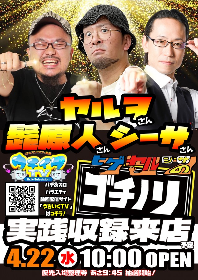 新台入替&ゴチノリ収録!10時開店!9:45整理券抽選開始!