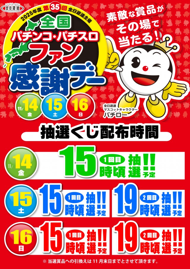 本日第35回全国ファン感謝デー最終日!!10時開店!!