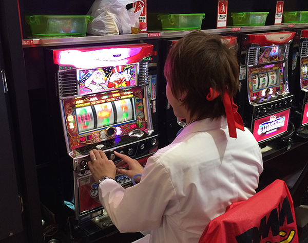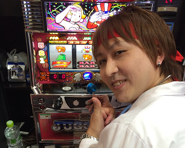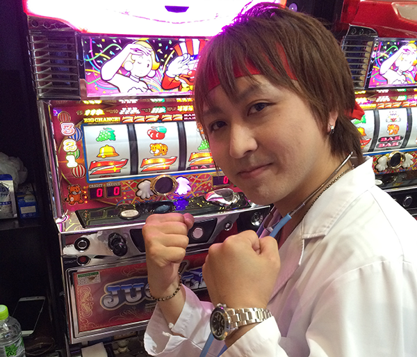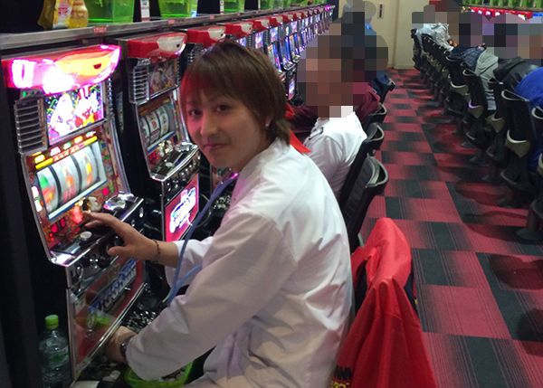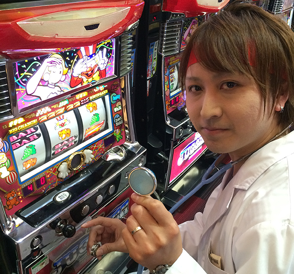 白衣に聴診器といった格好も注目されているなかで、この日は「マイジャグラーⅡ」に着席。