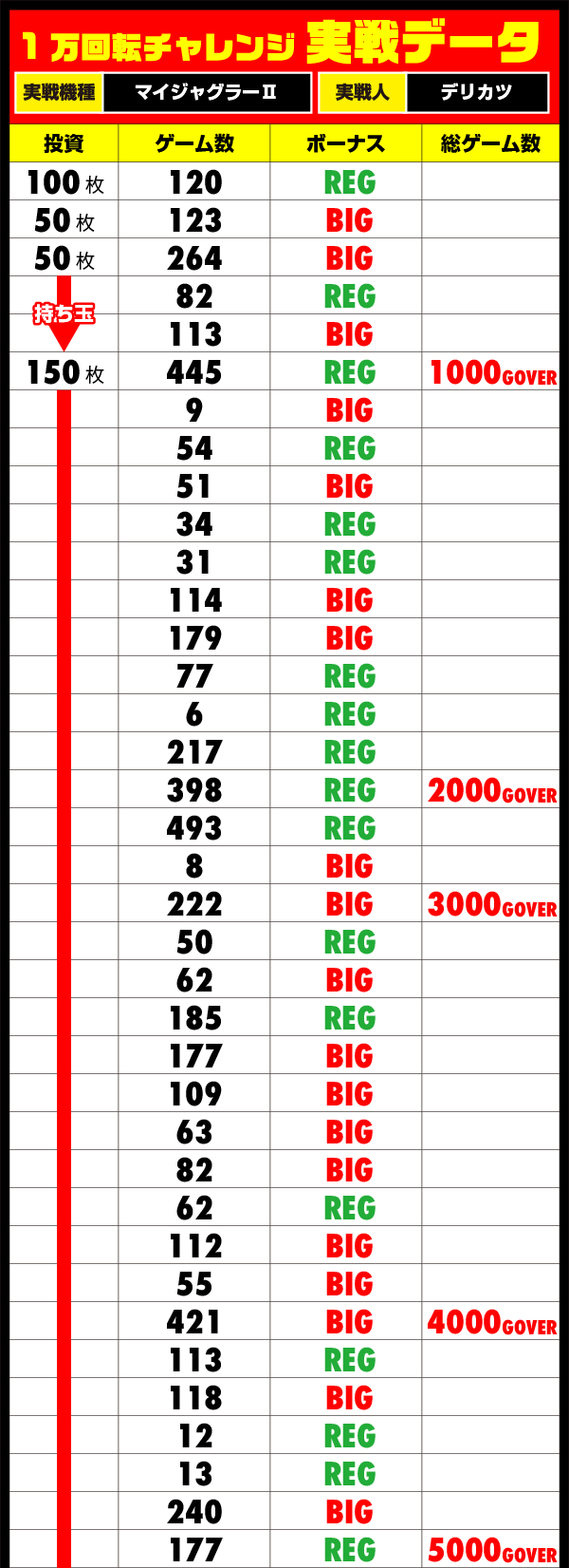 チャレンジのほうでは序盤に少しペースがくずれたものの、持ち玉を得られたことにより、後半のペースアップにつなげることができそうだ!