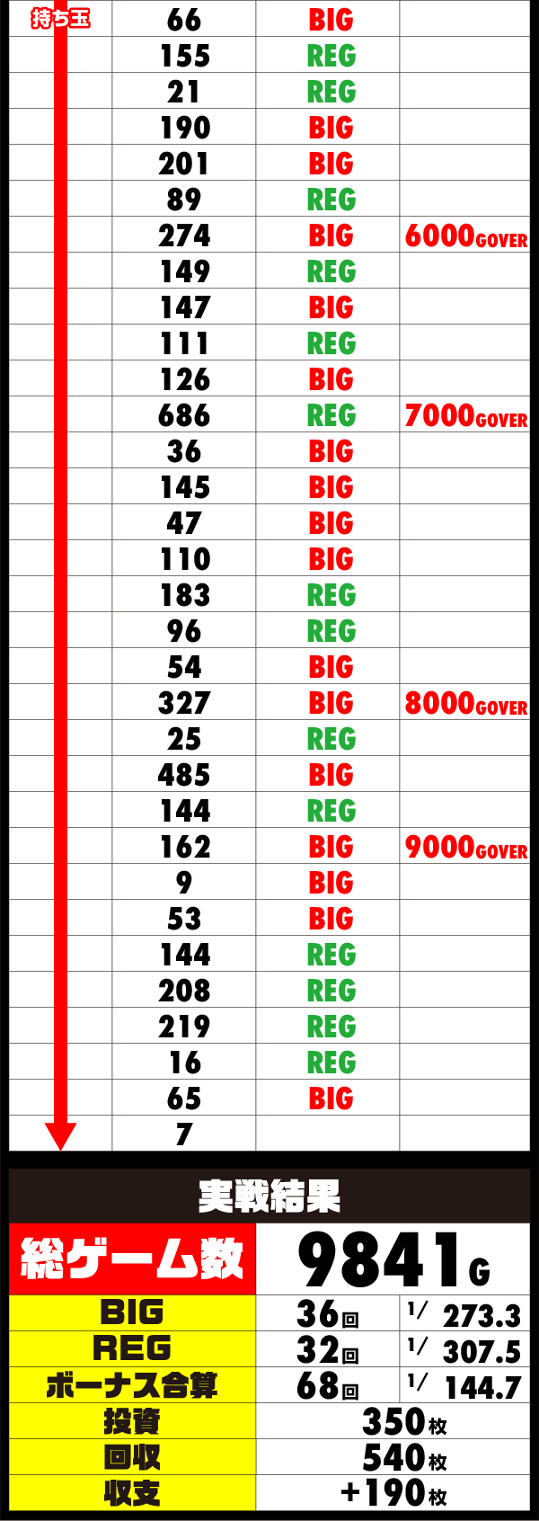 終了間際での思いもよらない展開に、ジャグラーマイスターといえども手も足もでず、9841Gで終了時間を迎えてしまった。