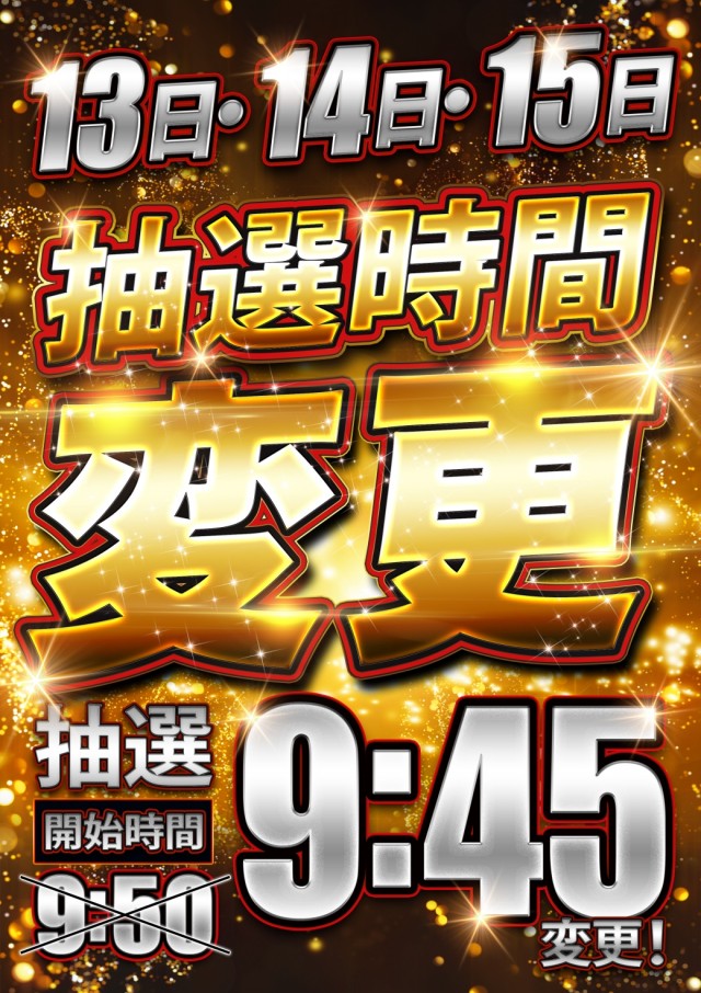 9:30から抽選整理券を配布いたします。 |