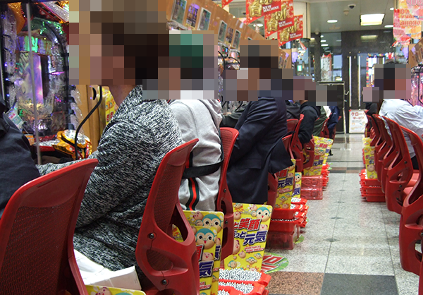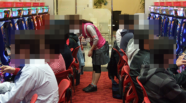 この日の4円パチンコでも、新台の「ぱちんこCR真・北斗無双」は開店直後から満席。