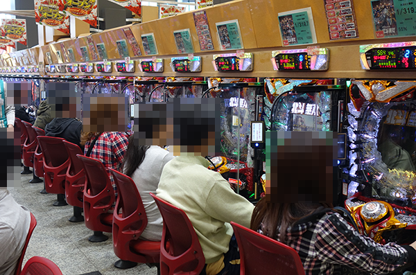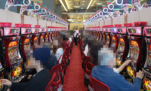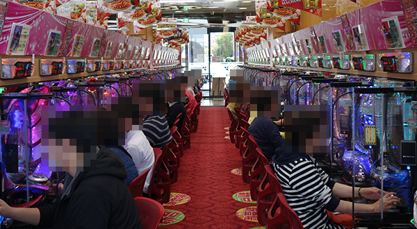 MAXタイプから遊パチまで幅広い機種が支持されており、大勢のプレイヤーが遊技を楽しんでいた。