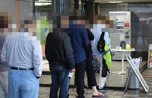 朝は抽選によって入場の順番が決まる。初日は朝から大雨が降っていたこともあり、開店を見計らって来店をするといったプレイヤーが多かった。