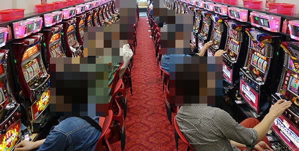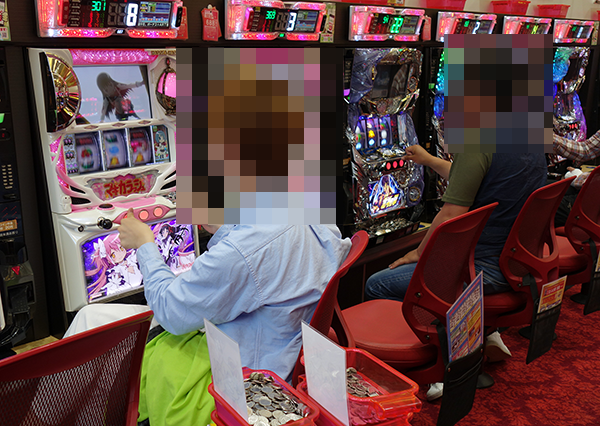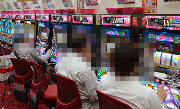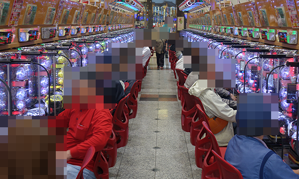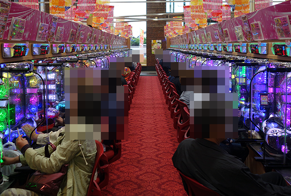 4円パチンコでは、海物語シリーズがほぼ満席となっているほどの盛況ぶり。