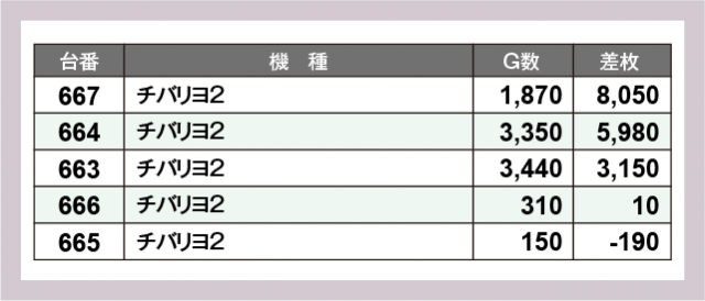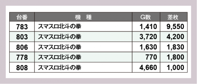 ※差枚数順に掲載しています