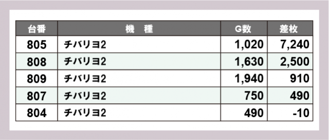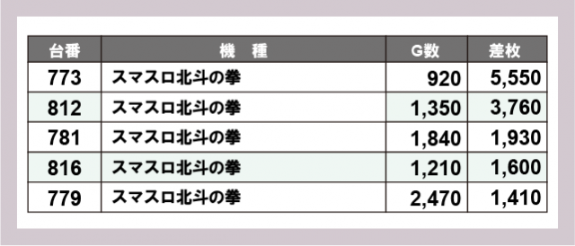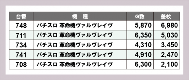 ※差枚数順に掲載しています