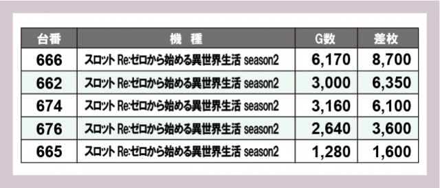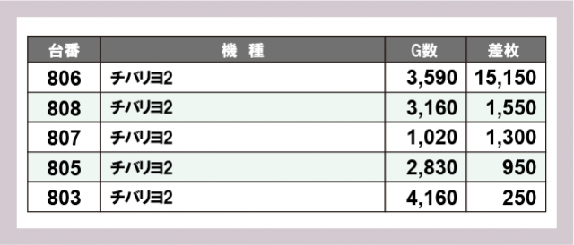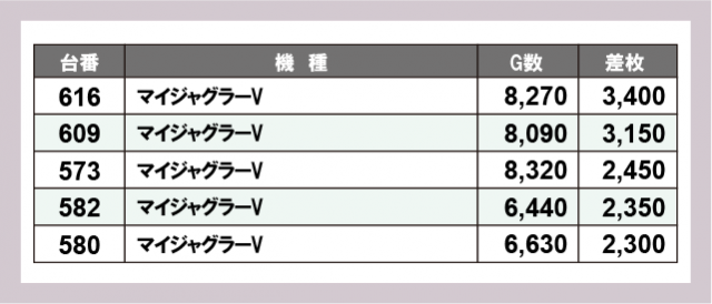※差枚数順に掲載しています