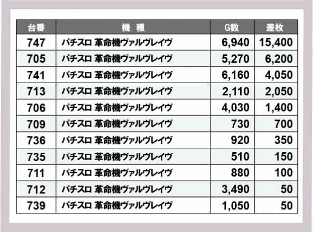 ※差枚数順に掲載しています