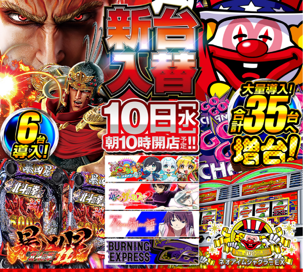 明日12月10日(水)【新台入替】予定 朝10時開店!!