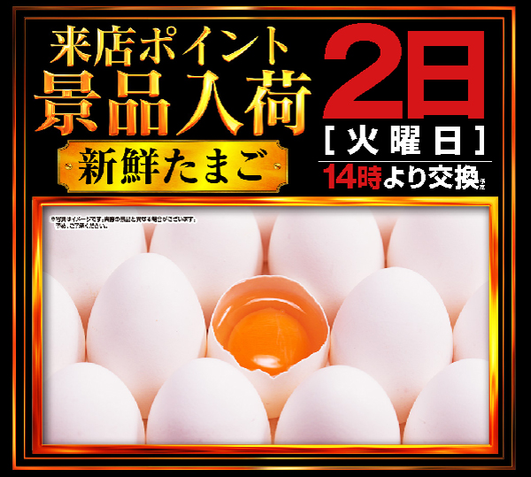 本日【来店ポイント卵交換会予定】朝10時OPEN!!