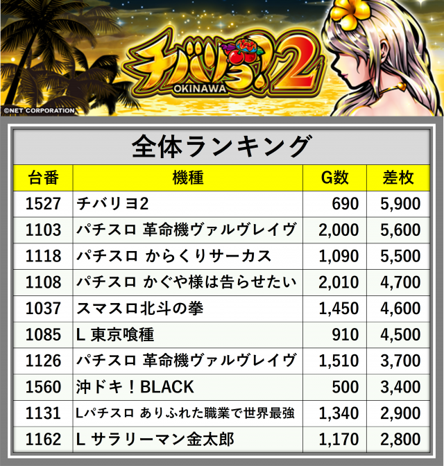 厳選された取材対象機種をはじめ、その他スロット全体から好記録が飛び出した!プレイヤーが楽しんだ1日を下記データにて振り返ってみて欲しい。