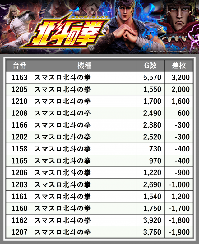 厳選された取材対象機種をはじめ、その他スロット全体から好記録が飛び出した!プレイヤーが楽しんだ1日を下記データにて振り返ってみて欲しい。