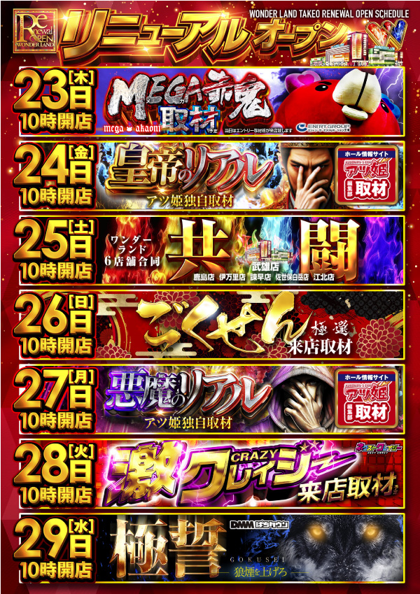 4/7(火) 新台入替×赤鬼取材 あさ10時開店!