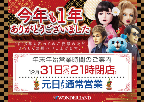 ワンダーランド武雄店 元日より通常営業10時開店予定
