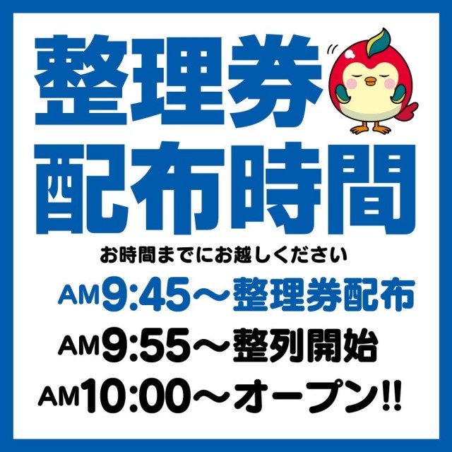 新台入替初日は9:45より、先着順にて整理券を配布致します。 |