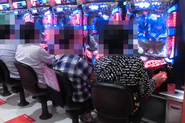 4円パチンコでも、「CR牙狼 魔戒ノ花」や海物語シリーズなど、充実した表情で遊技を続ける姿が多数。
