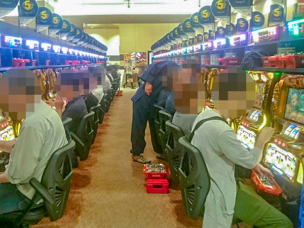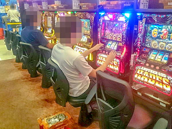 20円パチスロを見てみると、「バジリスク~甲賀忍法帖~絆」や「アナザーゴッドハーデス-奪われたZEUSver.-」、「押忍!サラリーマン番長」が盛況。至る所でプレイヤーから笑みがこぼれ、微笑ましいムードに包まれていた。